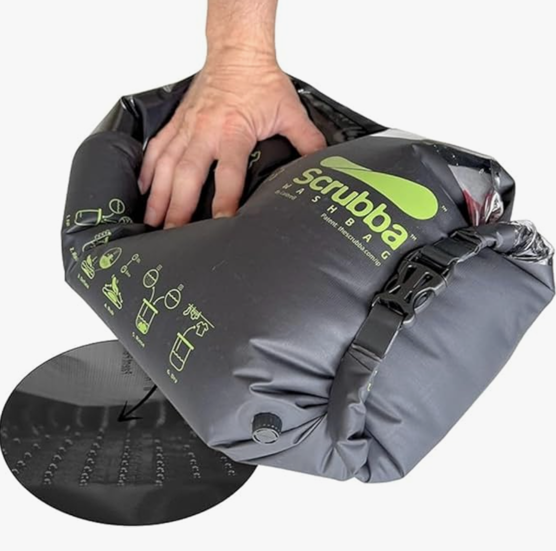 This combo is great for anyone traveling light or carrying only a backpack. The Scrubba bag lets you wash a few things in your hotel or hostel room. I find it works best for underwear, socks, and maybe a shirt or two. Laundry strips pack flat and make the whole process easier.