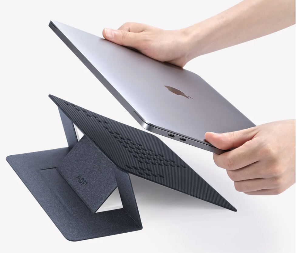 Most laptop stands are too bulky for travel. The Moft stand folds completely flat and slides into your travelers laptop case so it never takes up extra room. It gives your travelers computer the support they need for long work sessions without adding weight to their bag. I am on my second moft stand!